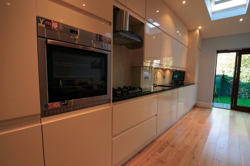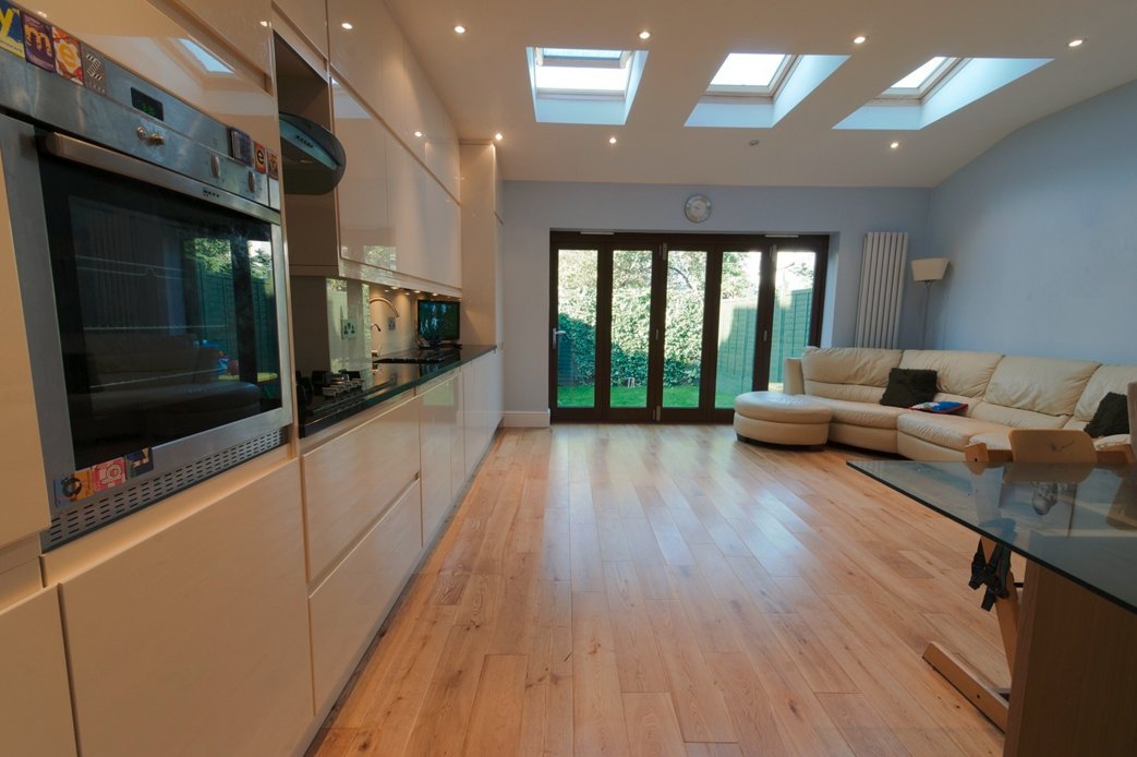 We designed, managed and constructed a rear extensions with new kitchen and resting area. The important aspect for our client keep as high as possible level of ceiling and bring natural lights to whole area.