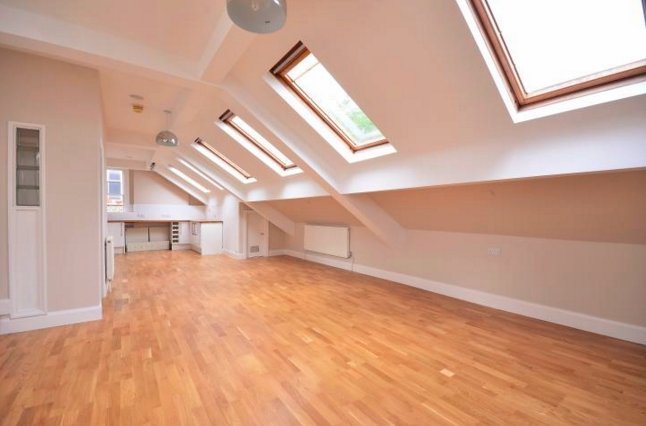 Our client decided to turn his huge unused attic space into a studio. Condition was to bring as much light as possible. This was achievable by using several Velux windows and painting the room white. With combination with wooden floor new studio looks clean, spacious and modern. We were very happy with the results as we have not only created great space withing the old attic but also increased the value of the property considerably.