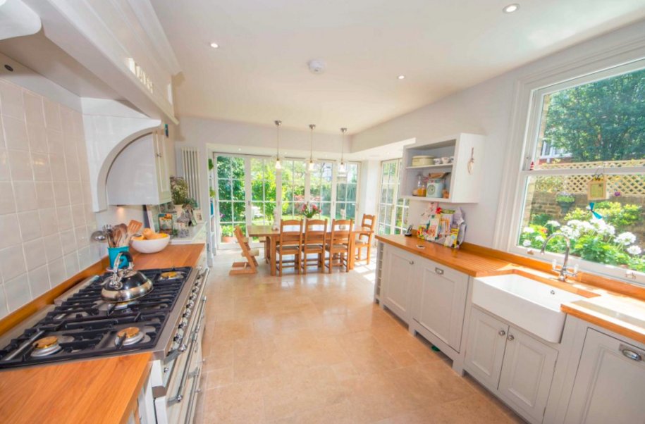 Professional couple decided to add home extension to their beautiful house in Brighton. They have decided to choose us as their contractor. Requirements were to keep the character of the house by using original materials. We used timber bi-fold doors with interesting grid features and installed a traditional Neptune kitchen. Although original character was kept we also installed modern features such as under floor heating and sound system. We have worked on the stone patio and landscaping too.