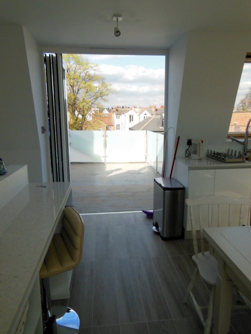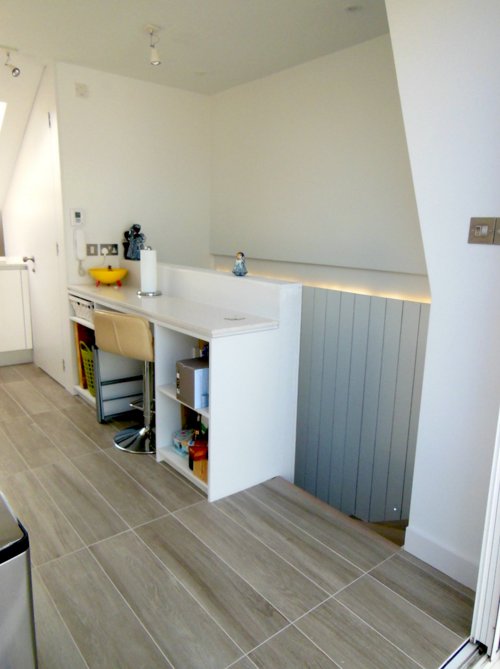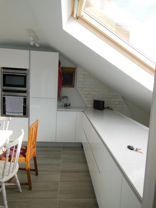 We had an honor to work at this beautiful loft conversion in a home in South West London. We have created amazing space in an unused loft and fitted modern white kitchen in loft area. Really interesting fact was that the customer decided to have their kitchen in the attic which is not something that we do every day. White loft conversions stairs used for this projects are great fit to this house.  As a result we have created a beautiful home that meets traditional and modern aspects.